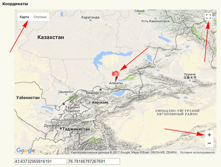 ΠΠ°Π»Π΅Π΅ Π½Π΅ΠΎΠ±Ρ ΠΎΠ΄ΠΈΠΌΠΎ Π²ΡΡΡΠ°Π²ΠΈΡΡ ΠΊΠΎΠΎΡΠ΄ΠΈΠ½Π°ΡΡ Π½Π° ΠΊΠ°ΡΡΠ΅, ΠΏΠ΅ΡΠ΅Π΄Π²ΠΈΠ½ΡΠ² ΡΠΊΠ°Π·Π°ΡΠ΅Π»Ρ Π² Π½ΡΠΆΠ½ΡΡ ΡΠΎΡΠΊΡ (Π΄Π»Ρ ΠΌΠ°ΡΡΡΠ°Π±ΠΈΡΠΎΠ²Π°Π½ΠΈΡ ΠΈΡΠΏΠΎΠ»ΡΠ·ΡΠΉΡΠ΅ Β«+Β» ΠΈ Β«-Β» Π² Π½ΠΈΠΆΠ½Π΅ΠΌ ΠΏΡΠ°Π²ΠΎΠΌ ΡΠ³Π»Ρ ΠΊΠ°ΡΡΡ; Π΄Π»Ρ ΠΈΠ·ΠΌΠ΅Π½Π΅Π½ΠΈΡ Π²ΠΈΠ΄Π° ΠΊΠ°ΡΡΡ Π½Π° ΡΠΏΡΡΠ½ΠΈΠΊΠΎΠ²ΡΡ β Π² Π²Π΅ΡΡ Π½Π΅ΠΌ Π»Π΅Π²ΠΎΠΌ ΡΠ³Π»Ρ; Π΄Π»Ρ ΡΠ°Π·Π²ΠΎΡΠΎΡΠ° ΠΊΠ°ΡΡΡ Π½Π° Π²Π΅ΡΡ ΡΠΊΡΠ°Π½ β ΠΊΠ½ΠΎΠΏΠΊΠ° Π² Π²Π΅ΡΡ Π½Π΅ΠΌ ΠΏΡΠ°Π²ΠΎΠΌ ΡΠ³Π»Ρ);