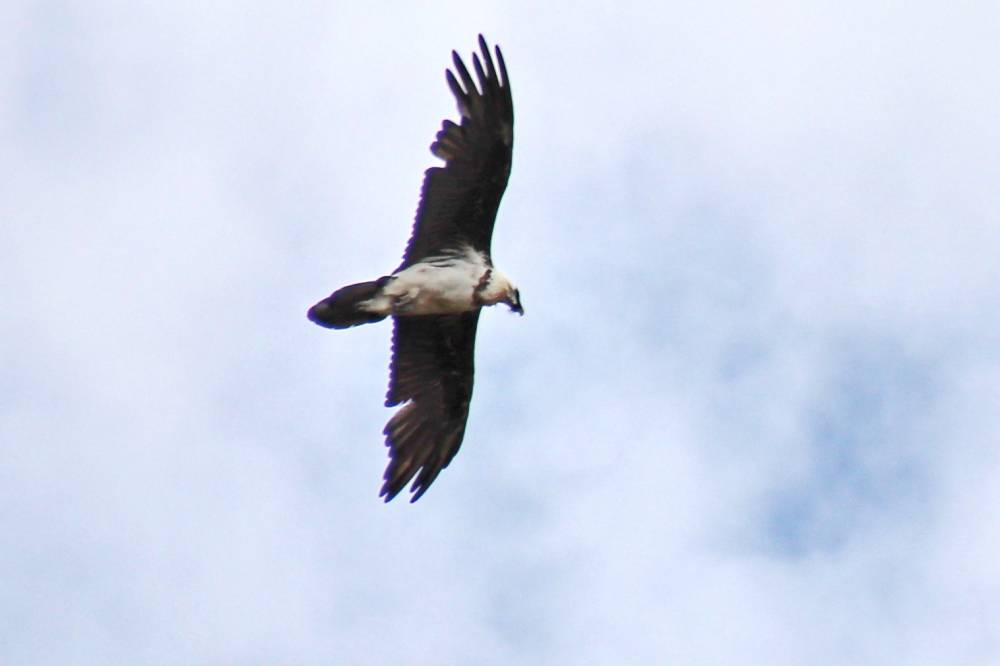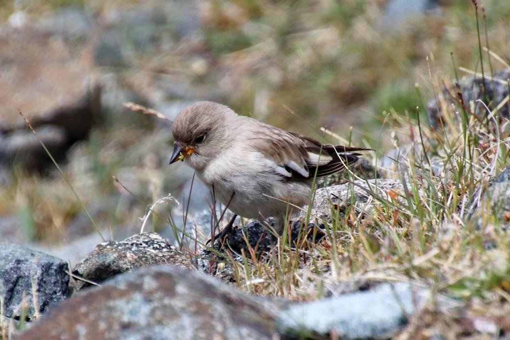 После Ульгия мы заехали под гору Цаст-Ула в горном массиве Цамбагарав. Там мы ночевали 2 ночи на высоте 3000 м, сходили на ледник (3700 м), а двое самых оторванных поднялись на вершину (4208 м). Над лагерем кружили орлы, грифы, курганники (видимо, мохноногие), прилетал бородач. Интересно, что двое наших героев, поднявшись на вершину, встретили там огромного сидящего бородача, который там (на плоской ледяной шапке) чувствовал себя полным хозяином. Под ледником (3500-3700 м) птиц я почти не видел, а в районе лагеря (2800-3200 м) было довольно много мелочи (каменки, варакушки, горихвостки). К моей радости, повстречались стайки снежных вьюрков (снежных воробьев) и жемчужных (как я решил) вьюрков. И встретилась одинокая овсянка (видимо, полярная, возможно, монгольская).