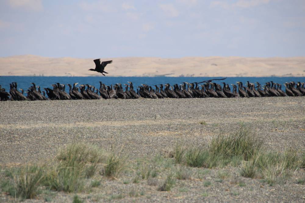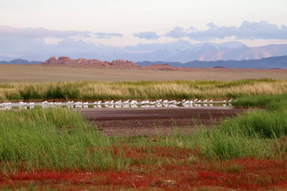 Последнюю ночь в Монголии мы провели на берегу озера Ачит-Нуур. Оно относительно недалеко от Ульгия (80 км), а от Ульгия до границы порядка 100 км. И вот Ачит-Нуур меня поразил. Птицами. Их количеством и разнообразием. В общем-то, наверное, все виды этих птиц встречаются на Алтае. Но собранные в одном месте и в таком количестве – это что-то. Причем масса птиц была и на озере и его побережье, и на речке, протекающей рядом, и на лугах между речкой и озером.