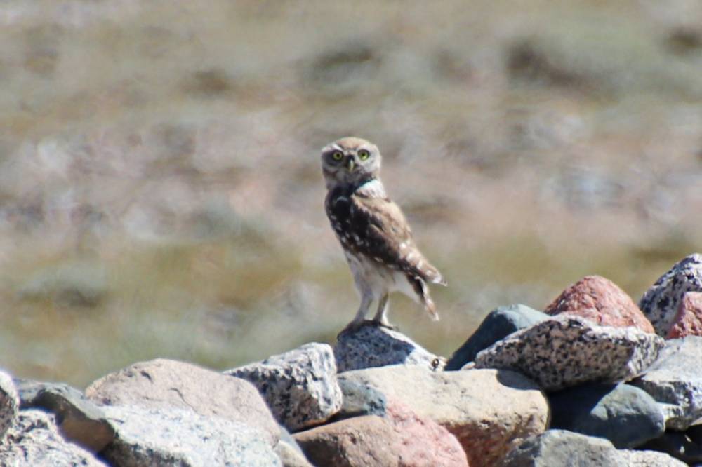 Прошелся я и по степи (степь похожа на Чуйскую, голая земля с камешками и отдельными жиденькими кустиками травы). Преимущественно жаворонки (рогатые и полевые), встретились зуйки (малые и какие-то еще, возможно, толстоклювые, а может, еще и морские). Каменки, каменные воробьи. Над степью изредка пролетали большие (в 50-70 голов) стаи садж. Из хищников регулярно встречались мохноногие курганники. А возле лагеря я встретил болотную сову.